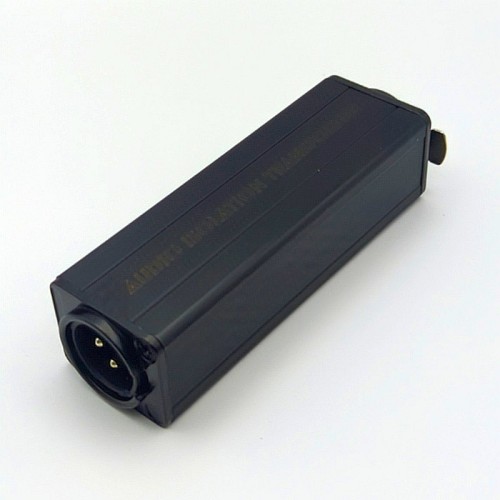 Passive XLR audio isolation transformer in sturdy aluminium enclosure with ground lift designed to eliminate hum, buzz, and noise caused by ground loops in balanced audio systems.